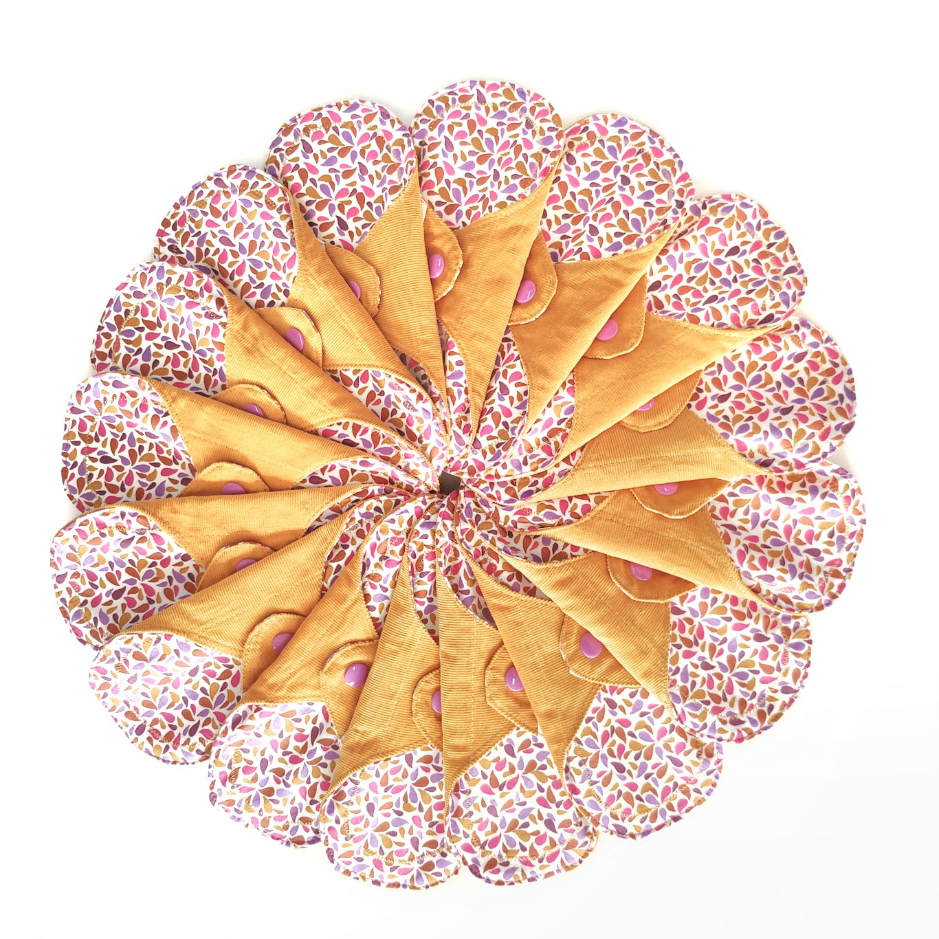 Especial para flujo abundante ya que tarda más en secar y es más gruesa. Lleva dentro una capa de franela, una capa gruesa de muletón más un núcleo extra absorbente, todo algodón 100%. Sirve como compresa de noche y, en algunos casos, como compresa de día para sangrado abundante o postparto.