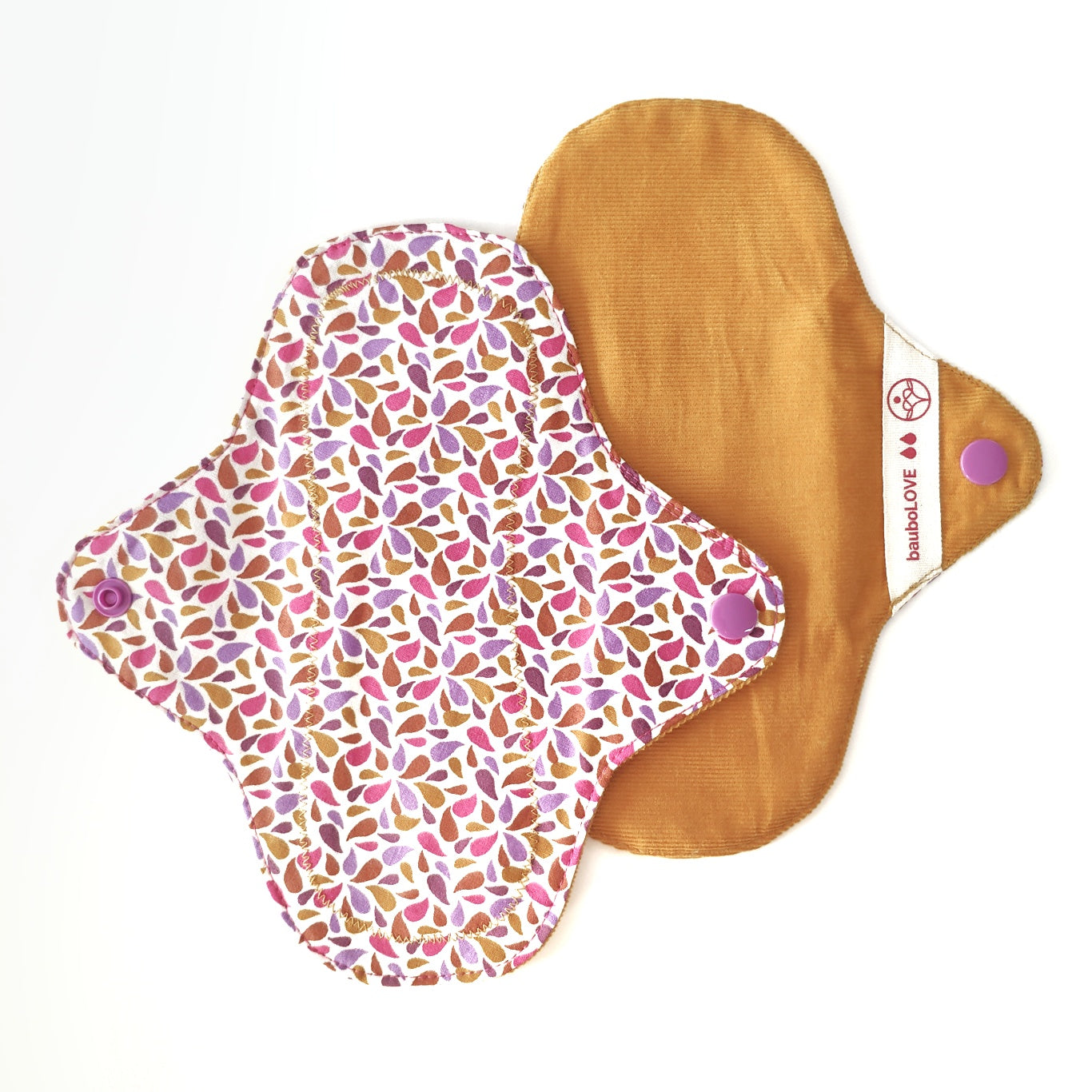 Esta es la compresa más pequeña, tipo salvaslip. Es un tamaño más cómodo para días de poco flujo, ciclos de menstruación media/baja, para combinar con la copa o como salvaslip. Recomendada para adolescentes, o primeras menstruaciones, para los días de poco flujo, etc.